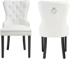 E839 $80 PU Leather Dining Chairs Set of 2, Tufted Upholstered Dining Room Chair with Pull Ring and Solid Wood Legs, White Color White Material Wood$80Ontario, CA