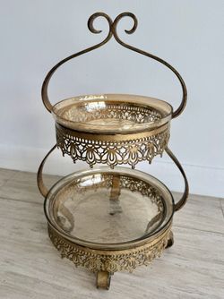 Two-tier antique-style metal stand with removable glass trays, perfect for displaying fruit or decorative accents$59Miami, FL