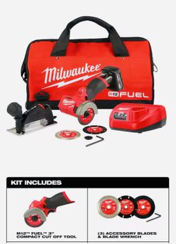 Milwaukee M12 FUEL 12V 3 in. Lithium-Ion Brushless Cordless Cut Off Saw Kit with One 4.0 Ah Battery Charger and Bag$200Lewisville, TX