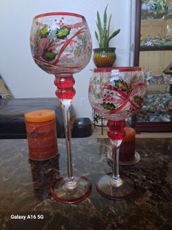 2 Christmas Glass Verre Cristal Goblet Votive Candle Holders$30Las Vegas, NV