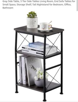 Set of 2 3-Tier Small End Tables Narrow Side Table with Steel Grid Storage Shelves Slim Nightstand X-Design Sofa Side Table Small Bookshelf Bookcase D$50Menifee, CA