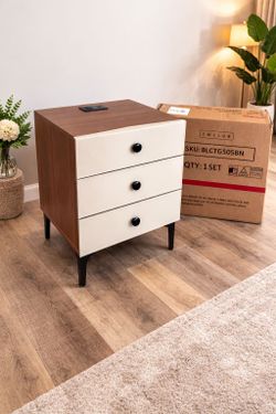 New YMCLUB Modern Nightstand - 3 Large Drawers & Charging Station Wood Leather Surface$85Menifee, CA