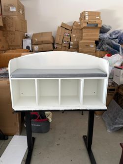Kids Bookshelf with Reading Nook, Toddler Bookshelf with Soft Grey Cushion, 4-Cube, White,(MOMC-KB-T)$85Menifee, CA