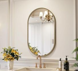 Champagne Bronze Bathroom Mirror 20x33 Inch Vintage Gold Beaded Oval Mirror$65Elwood, IL