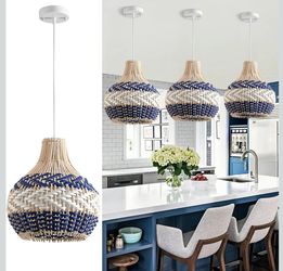3-Light Rattan Pendant Light 15" Hand-Woven Blue White Wicker Basket Chandelier$120Elwood, IL