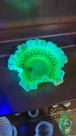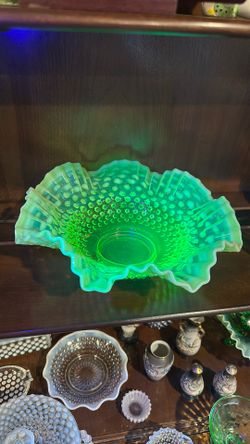 Yellow Uranium Hobnail Opalescent Fenton Bowl Vaseline Glass 10"$150Burien, WA