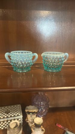 Fenton Blue Opalescent Hobnail Glass Mini Creamer And Sugar$40Burien, WA