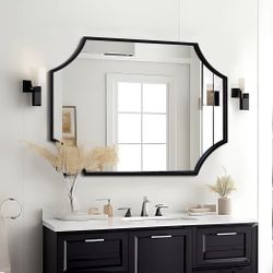 New! Scallop Wall Mirror, Black Bathroom Mirror 30x40 inch with Aluminium Frame, Large Wall-Mounted Vanity Mirror, Metal Deacor Mirror for Bedroom, Li$65Los Angeles, CA