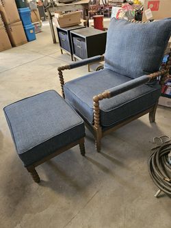 Fletcher Spindle Chair with solid wood frame blue fabric upholstery$250Bakersfield, CA