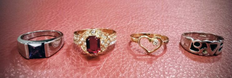 Lot Of 4 Rings. 14 KT Gold Plated-Platinum Plated-Steel-Diamond-Cubic Zerconia-Red Quartz-Amethist Rings 💍$40Turlock, CA