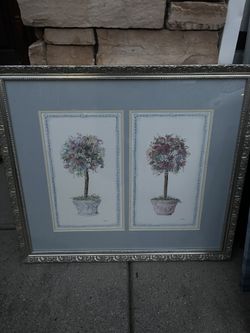 set of two ornate framed botanical artworks featuring topiary trees, by artist Carolyn Bucha.$25Acworth, GA