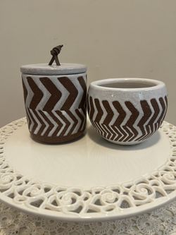 West German Pottery 1970’s Vintage set of vintage ceramic vessels with a brown and white finish$12Acworth, GA