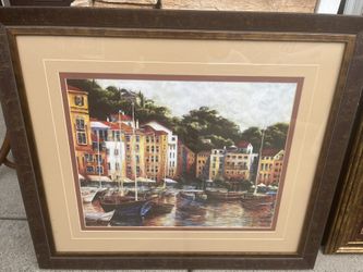 Mid 20th century original oil painting of a fishing harbor by the American artist John Luini$65Acworth, GA