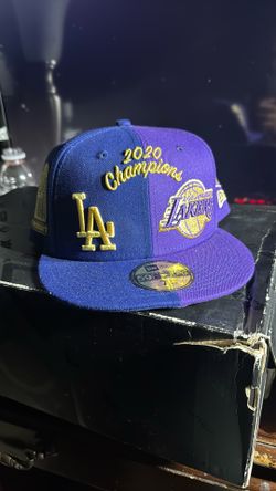 This is a New Era Los Angeles 2020 Dual Champions 59FIFTY fitted hat in gold/blue/purple/black color, size 7 3/4. $30Moreno Valley, CA