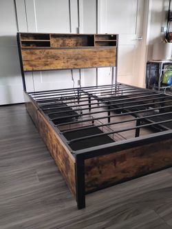Industrial Rustic Queen Bed Frame w/ Storage Headboard – Heavy Duty Steel & Wood$325Centennial, CO