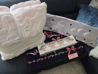 Complete Pink Bow And Heart Shaped Set Pillows, Mirrors, Hooks And Bath Mat.$70Sacramento, CA