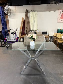 47.24 in. Rectangular Clear Tempered Glass Table with Adjustable Silver Metal Cross Legs Dining Table, Seats 4-6 people 💰130$$130Decatur, GA
