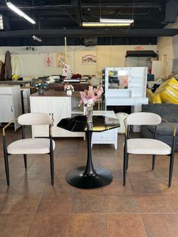 🔥Set of 3🔥Modern black octagonal coffee table with a metal base, a black patterned marble tabletop, and modern charm beige cushions, black metal leg$130Decatur, GA