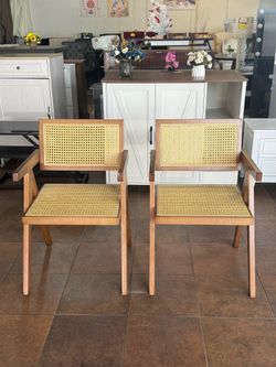 🔥Special Discount (Set of 2 )🔥Rattan Accent Chairs Mid Century Dining Armchair Bamboo Frame Kitchen (Natural) 💰80$$80Decatur, GA
