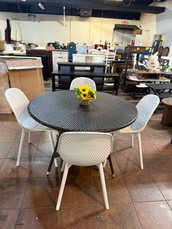 🔥Set of 5🔥Outdoor rattan round dining table with white plastic dining chairs 💰260$$260Decatur, GA