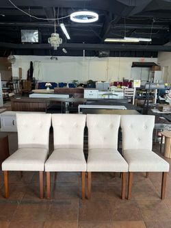 🔥Set of 4🔥Dining Chairs ,Upholstered Side Chairs with Button Tufted Backrest & Rubberwood Legs,Linen Fabric Padded Seat for Kitchen,Dining Room(Cre$239Decatur, GA