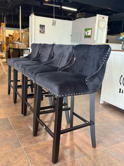 🔥Set of 4🔥Velvet Bar Stools Tufted Bar Chairs for Counter and Bar Height, 27" in Barstool Set, Kitchen Stools for Island, Wood Frame, Upholstered(Bl$219Decatur, GA