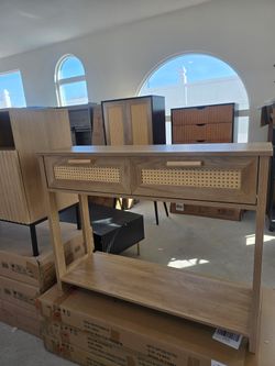 Rattan Console Table Boho Entryway Table Small Narrow Sofa Hallway Table with Drawers Open Storage Shelf for Living Room Natural. New in the box. Pic$75Apple Valley, CA