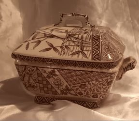 antique W.H. Grindley & Co. brown transferware tureen in the "Burmah" pattern$85Herald, CA