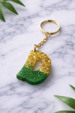 Letter D, Customized Gold And Green Resin Keychain $6Placentia, CA