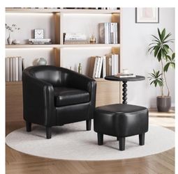New fox leather upholstered barrel chair with footrest black$50Orange, CA