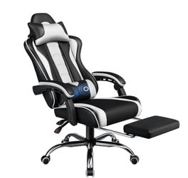 Black and white video gaming chair with massage lumbar and foot rest new$60Orange, CA