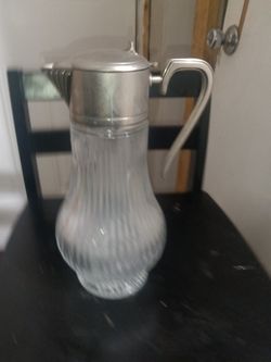 Vintage Glass/silver-plated handled crystal or glass pitcher. It can also be known as a claret jug or wine decanter,$30East Chicago, IN