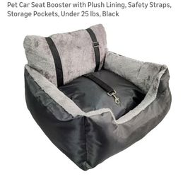 Pet Car Seat Booster with Plush Lining, Safety Straps, Storage Pockets, Under 25 lbs, Black