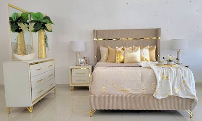 Juego de Cuarto Queen en Velvet Beige con Detalles Dorados | Nuevo de Lujo$50Hialeah, FL