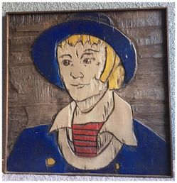 Jean-Claude Gaugy Original Carved Wood Relief Boy in Blue '72 Folk Art Sculpturd$450Calimesa, CA