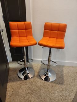 (BEST OFFER) Adjustable height orange swivel bar stools with foot rest$60Tampa, FL