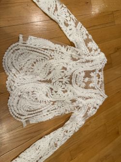 White Lace Long Sleeve Sheer Top Floral Embroidered Elegant$9Franklin Park, IL
