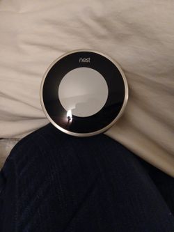The image shows a Google Nest Learning Thermostat, likely a 2nd generation model.
