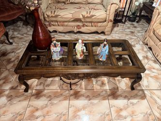 Traditional Carved Wood Coffee Table with 6-Pane Inset Glass Top$300Miami, FL