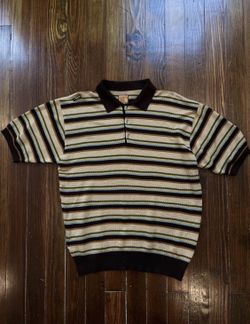 Akademiks Knit Polo Shirt XL Brown Tan Striped Short Sleeve Retro Y2K Sweater$25St. Louis, MO