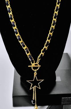 Gold tone star pendant necklace with black chain and lobster clasp$18Katy, TX