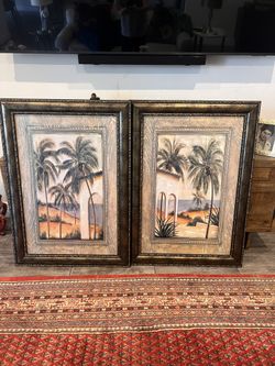 2 Pair Large Kirkland's Harlequin Palms wall art prints in brown and gold frame$150Orlando, FL