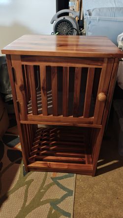 Vintage Mid-Century Style Solid Acacia Wood Slatted Nightstand / Side Table - 30" x 18"$40Quartz Hill, CA