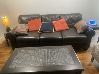 Dark Brown Leather Sofa with Cushions $500Dallas, TX