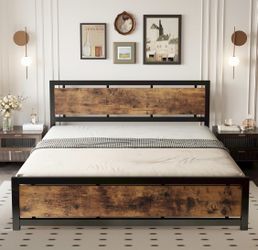 Brand New King Bed Frame with Headboard and Footboard, Metal Strong Supports, Easy Assembly, Noise-Free, No Box Spring Needed, Vintage Brown$130Riverdale, GA