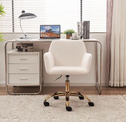 Brand New Faux Fur Office Desk Chair, Comfy Swivel Armchair with Wheels, Upholstered Fuzzy Vanity Chair, Adjustable Height, White 40$40Riverdale, GA
