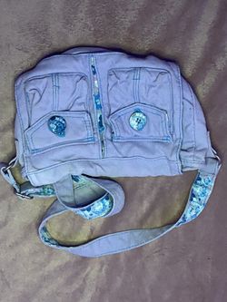 Blue and purple floral embroidered shoulder bag with adjustable straps, featuring a cute design #y2kfashion #fairybag$3Tampa, FL