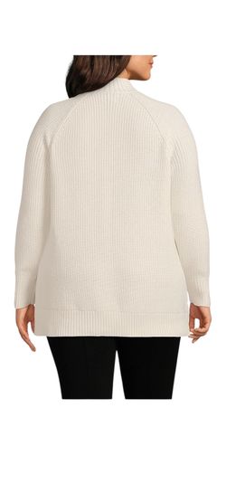 Lands' End Women's Plus Size Drifter Shaker Easy Fit Mock Neck Tunic Sweater - 3X - Fresh Ivory