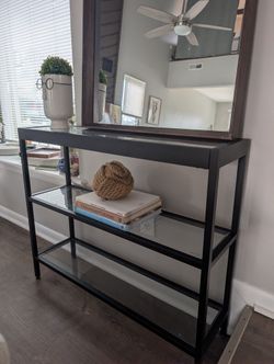 Black metal mirror shelf 30"H x 20" W x 5" shelf$35Virginia Beach, VA