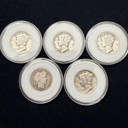 Lot Of 5 Coins One Dime Silver 90% Collectible Pieces $60Henderson, CO